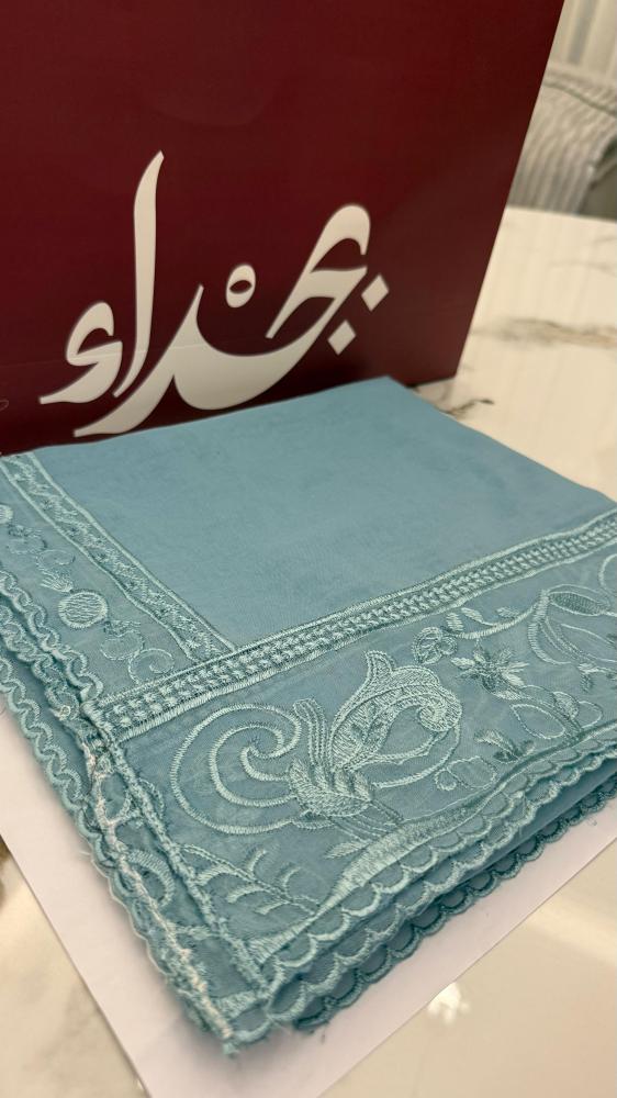 أضيفي لمسة ناعمة ومشرقة لإطلالتك مع طرحة بوال ياباني باللون السماوي الفاتح الحصري من بجداء، واقتنِيها الآن قبل نفاد الكمية!